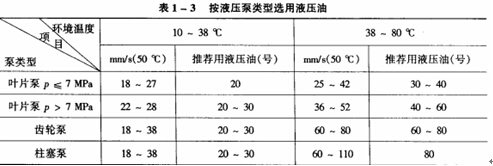 一假情況,按液壓泵類型選用液壓油,如表1-3所示。當(dāng)然,也可鎖液壓元件產(chǎn)品說明書中推薦的牌號(hào)選用液壓油。